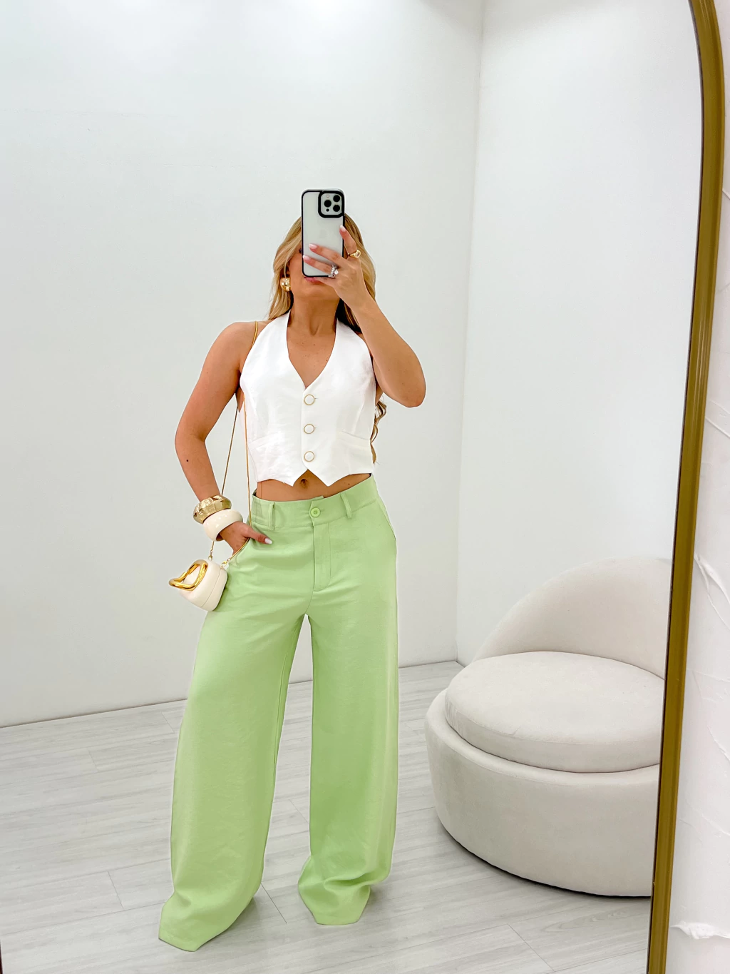 Confeccionado em tecido marrante encorpado de alfaiataria, esse colete possui caimento impecável e modelagem que valoriza o corpo com seu design frente única. Sem forro e sem bojo, oferece conforto e leveza, enquanto os botões frontais adicionam um charme sutil e sofisticado.