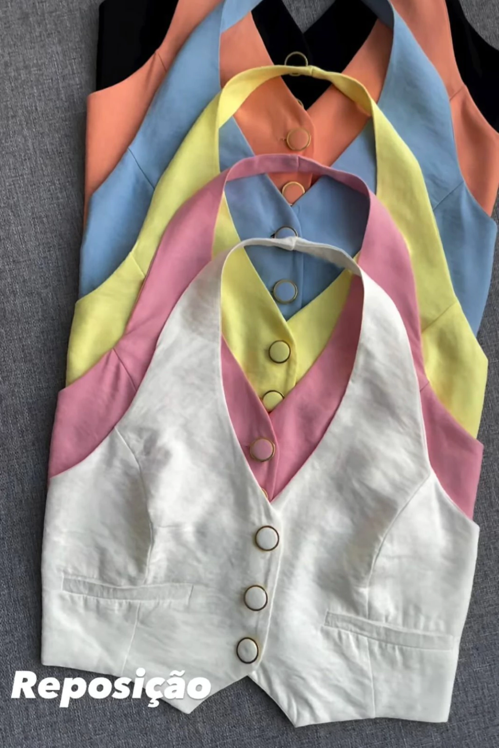 Eleve seu estilo com o Colete Alfaiataria Frente Única, a peça que une elegância e modernidade para transformar qualquer look!